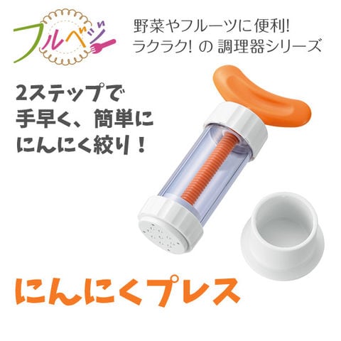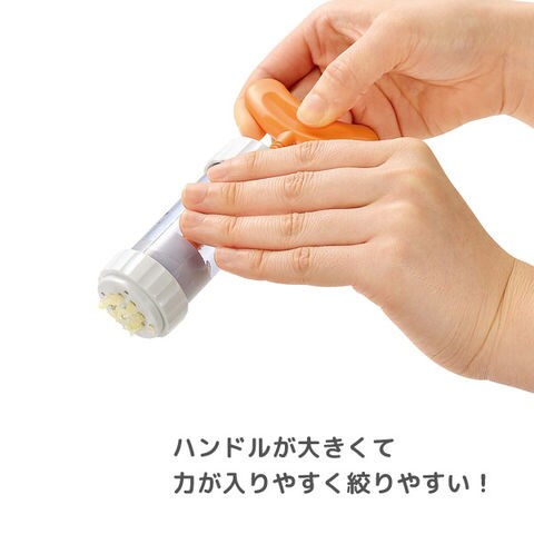 2ステップで手早く、簡単にんにく絞り! ハンドルが大きくて力が入りやすく絞りやすい! |