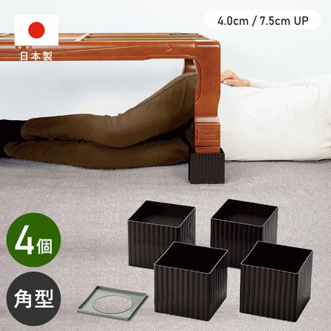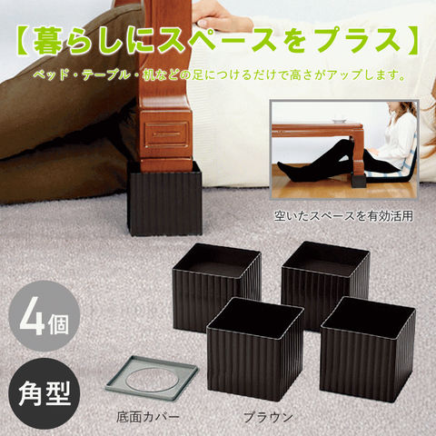 ベッド テーブル 脚 高さ調節 スクエア こたつ 継ぎ足し 継ぎ脚 4個組 四角 高さ 上げる あげる NEWハイヒール100 7.5cm 4cm 2段階UP 足 高くする 滑り止め 底上げ 延長 太い脚