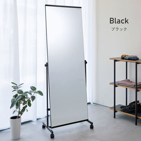 品番:K02-3-S01-240-P-1126M※品名:全身鏡 キャスター付き ワイド タイプ ミラー おしゃれ フレームなし 全身 姿見 鏡 スタンドミラー 自立 ブラック 黒 シルバー スタイリング 飛散防止 全身ミラー 大型 大きい オフィス 大型ミラー 玄関 北欧 スタンド