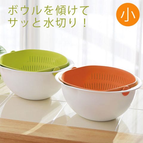 | ボウルを傾けてサッと水切り!新発想のザル・ボウルです。 水切りを何度も繰り返す米研ぎ作業もラクラク! 水切りは、片手でヒョイっと傾けるだけ! ボウルを180度回してしっかり水切りできます。 | |