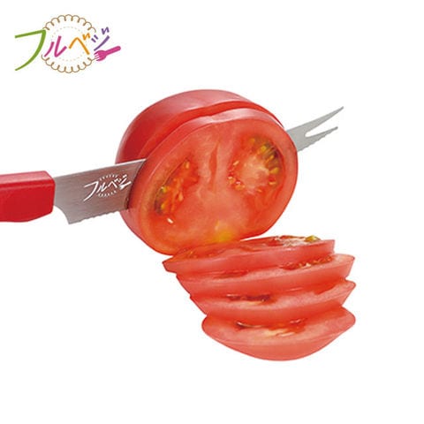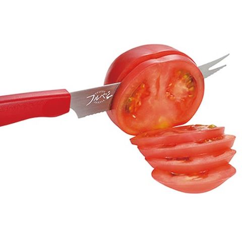 | 野菜や果物、チーズを手早くカット! 切りにくいトマトがつぶれず薄くキレイに切れる! 先端のカーブ刃で食材がつながらずカットできる! | |