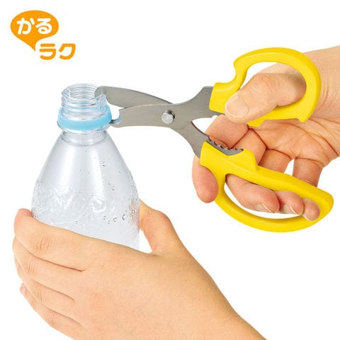 ボトルの 分別 ハサミ かるラク 日本製 KR-401 ペットボトル キャップ イエロー 黄色