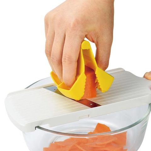 | まだスライスしたい!その時に! 小さくなった野菜をつかんで指をガード! 野菜を無駄なくスライスできます。 | |