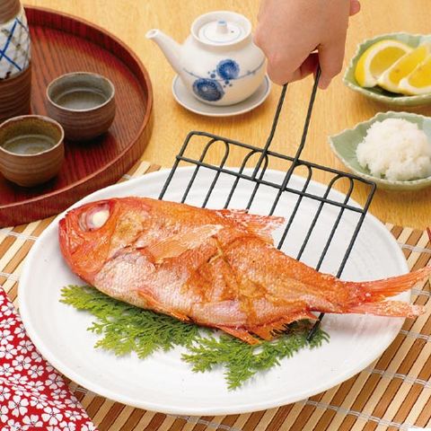 | 魚の姿焼きも身崩れナシ! フッ素樹脂加工ですので、すくい上げた食材がスルリと美しく盛りつけ出来ますし、使用後のお手入れも簡単ラクラクです! |