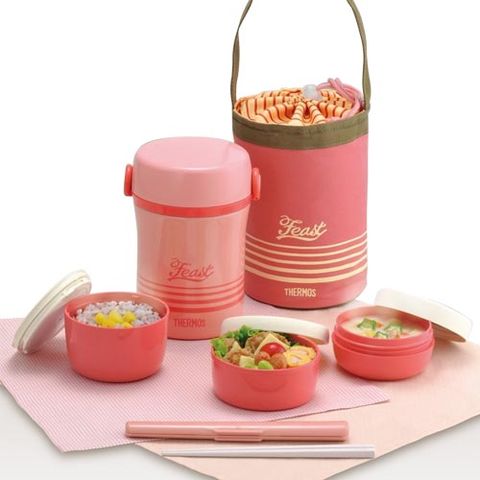 | コンパクトに収納できる 真空断熱の保温容器に3つの容器をまとめて入れるのでコンパクトです。 |