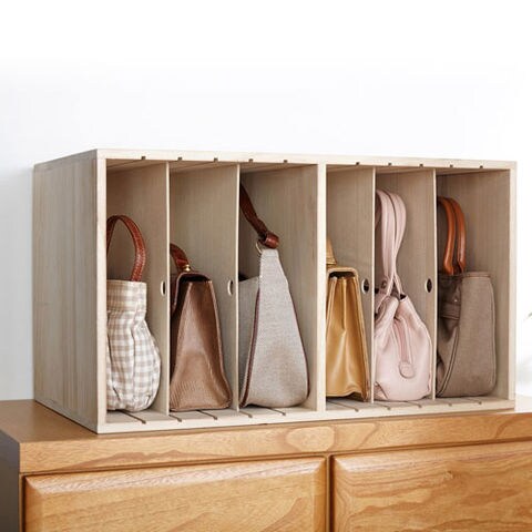 | 整理収納アドバイザー監修商品 倒れたり、平置きして積み重ねてしまいがちなカバン…立てて置くと、取り出しやすく戻しやすい! 見た目も美しく、型崩れせずにスッキリ整理できます。 カバンハウスを2台積み重ねて設置する事も可能です。 | |