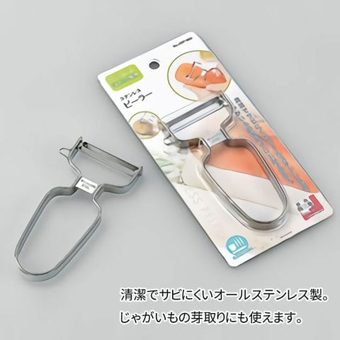 | 清潔でサビにくいオールステンレス製。 じゃがいもの芽取りにも使えます。 | |