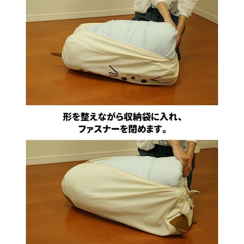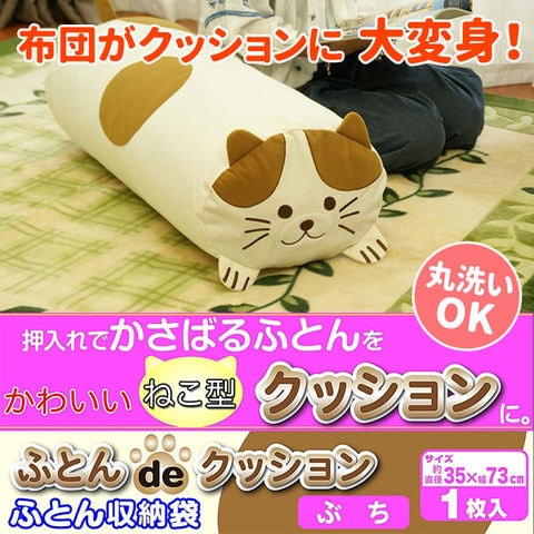 | 使っていない掛けふとん、通常は押入れの中に収納しておきますね。使わないふとんをインテリアで活用できたら・・・。 「ふとんdeクッション」は専用の収納袋に掛けふとんを入れてかわいいアニマルクッションとして活用できます!そうすることにより押入れのスペースを他の収納に使うことの出来る便利グッズです。 | |