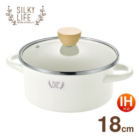 ホーロー 両手鍋 18cm IH対応(ガス火もOK) ホワイト SILKYLIFE シルキーライフ SLH-002