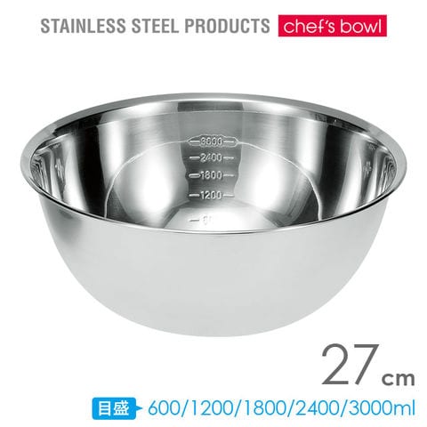 シェフズボウル ステンレス深型ボウル 27cm(目盛付き)の解説