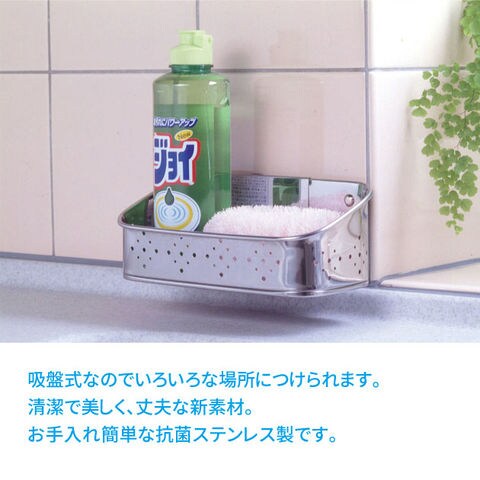 抗菌ステンレス 吸盤式タワシ入れ(着脱式) 小 日本製 CK-111