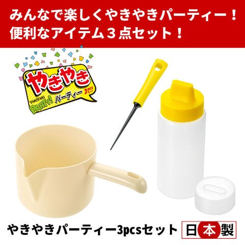 | みんなで楽しくやきやきパーティー!便利なアイテム3点セットです。 ・持ちやすくそそぎやすい、たれない形状の粉つぎ ・家庭で本格マヨネーズデコレーション ・たこ焼き器を傷つけにくい樹脂製ピック | |