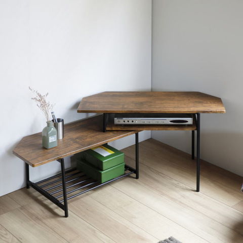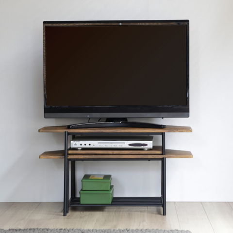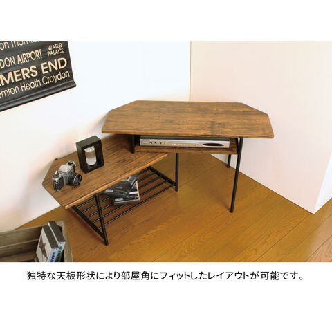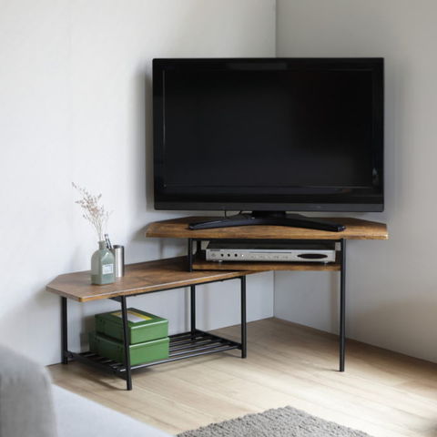 | 独立した上部天板が自由度の高いレイアウトを可能にしたテレビボード。 独特な天板形状により部屋角にフィットしたレイアウトができます。 | |