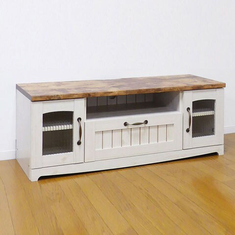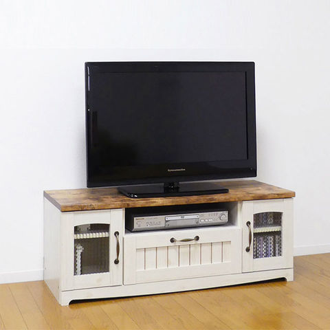 | 木目調とベージュカラーのカントリー調テレビ台。 収納もたっぷりと。 | |