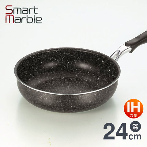 深型フライパン 24cm IH対応[ガス火もOK] SmartMarble スマートマーブル SMF-24 フライパン IH オール熱源対応 1人暮らし 小さめ 丈夫 焦げ付きにくい