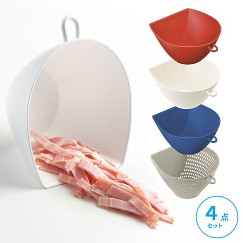 | いろんな食材をサッと「チリトリ」。お料理の下ごしらえがはかどります。 チリトリボウル3個とザル1個の便利なセット。用途がグ~ンと広がります。 | |