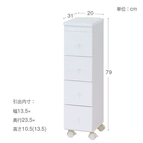 | サイズ | (約)幅20×奥行31×高さ79cm 引出内寸:(約)幅13.5×奥行23.5×高さ10.5(13.5)cm |