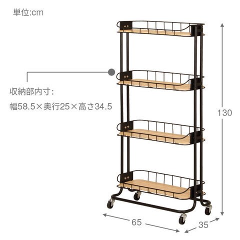 MASH【正規品】マッシュ ケージラック BY CAGE RACK 幅65cm キャスター付き アイアン ラック シェルフ キッチンワゴン BCR-640 弘益
