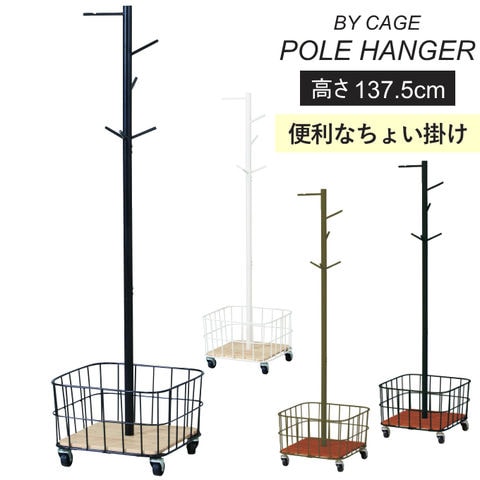 ポールハンガー ポールスタンド ハンガーラック 木製 子供 コートハンガー キャスター付き 収納かご付き ポールハンガーラック ランドセルラック ラック ハンガー収納 一人暮らし 単身赴任 新生活