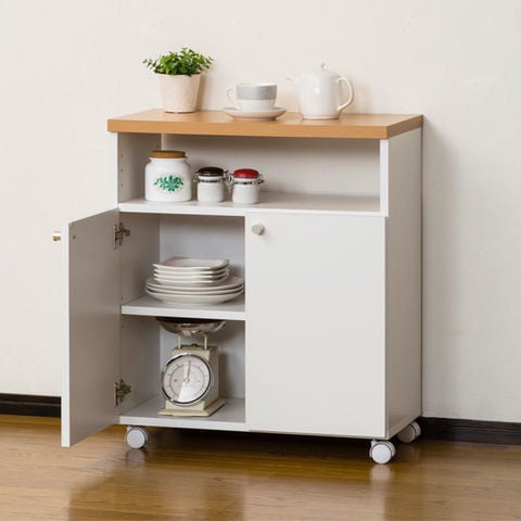 抜群の収納力で、キッチン・ダイニングで大活躍!棚板は収納物に合わせて、上部空間か扉内のどちらかに取り付けできます。 背面化粧仕上げ。 | |
