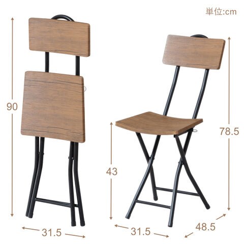 | 幅31.5×奥行48.5×高さ78.5cm(座面高さ43cm) 折り畳み時:幅31.5×奥行7.5×高さ90cm |