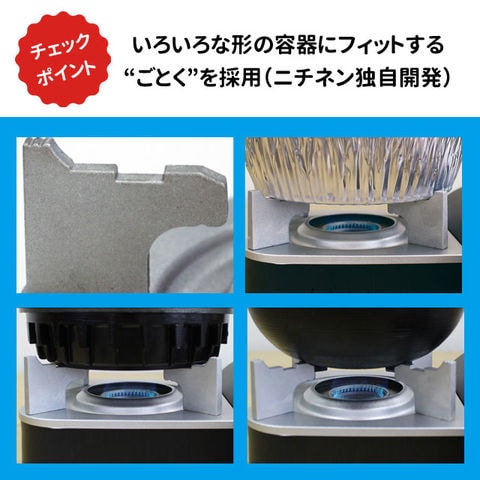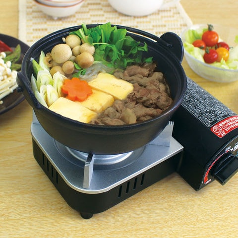 業界最小!小鍋料理に最適サイズ! ・マイコンロ・ミニエコDLXの後継機種として落ち着きのあるボディカラーを採用 ・いろいろな形の容器にフィットする“ごとく”を採用(ニチネン独自開発) ・コンパクトで卓上は広々、省スペース収納 ・内炎式バーナー採用によりガス消費量約10%カット ・頑丈なアルミダイキャストボディ ・カラー化粧箱入 ・圧力感知安全装置付 ・圧電点火方式 |