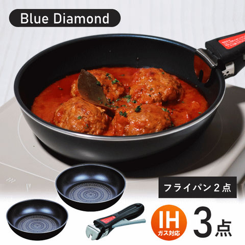 | 耐久性抜群!内面3層コーティングのフライパン 上部な特殊加工により、変形に強く金属ヘラも使える!ダイヤモンドの粒子を配合した強力コーティング「ブルーダイヤモンドコート」。汚れやコゲがこびりつきにくく、お手入れラクラク!また、少量の油で調理可能なヘルシークッキングを実現しました。 収納に便利な着脱ハンドル式 着脱式ハンドルの採用により、重ねてコンパクトに収納できます。ハンドルを外せばオーブン料理もでき、料理の幅が広がります。「そのまま食卓」も可能にした便利なクッキングウェアです。 ※ハンドルはルクスパンブルーダイヤモンドコートIH対応シリーズ専用です。他の商品にはご使用いただけません。 オール熱源対応! ガス火はもちろん、IH100/200Vをはじめ、全ての熱源に対応可能です。 |