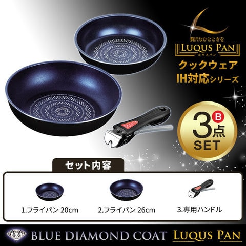 フライパン セット ih 取っ手が取れる フライパンセット 20cm 26cm ガス火 IH対応 ダイヤモンドコート 一人暮らし 調理器具 セット ハンドル 取っ手の取れる ルクスパン 20センチ 26センチ 調理器具セット