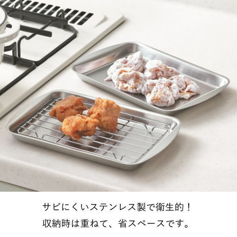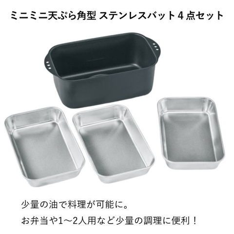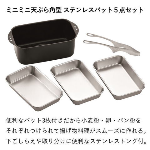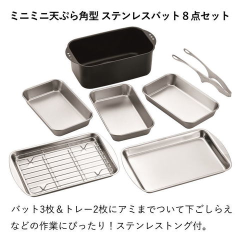 ミニミニ天ぷら鍋角型 ステンレスバット・トング・トレーセットの解説