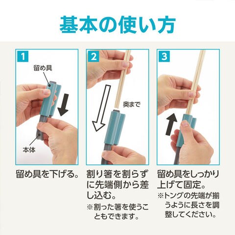 | 差し込むだけで、割り箸がトングに大変身!汚れたら先端をサッと取り替えできて、衛生的です。小型のコンロにちょうどいいショートサイズ。食器洗い乾燥機対応。 |