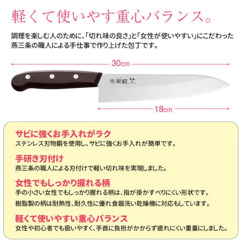 洋包丁 刃渡り18cm 作楽結 さくらゆい SKU-103 包丁 ステンレス 牛刀包丁 職人 燕市 日本製