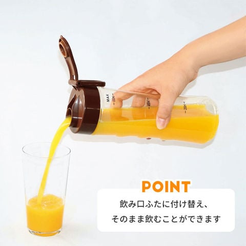 ◆一度にたくさん作れる600ml容量 ◆ 落としても割れにくいトライタンボトル ◆ ON、FLASH 2ポジションのダイヤルスイッチ ◆ボトルをセットしないと作動しない安全構造 ◆ 飲み口ふたに付け替えそのまま飲める ◆かんたんレシピ付き |