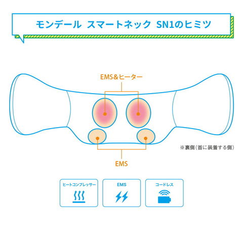 品番:B01-1-80-SN1※品名:スマートネックSN1 モンデール ヒーター内蔵 首元 マッサージ 首 マッサージ器 ケア ながらケア ながら作業 EMS 送料無料