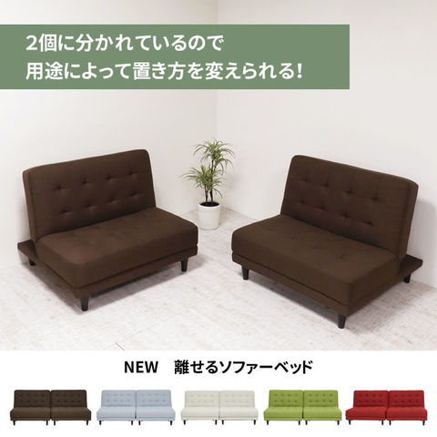ソファにも、ベッドにもなる1台2役のソファベッド! それぞれ離してシングルソファーに。 並べればソファーに。 並べてフラットにすればベッドに。 角度を変えればリクライニングベッドにも! カラーは選べる5色展開です。 |
