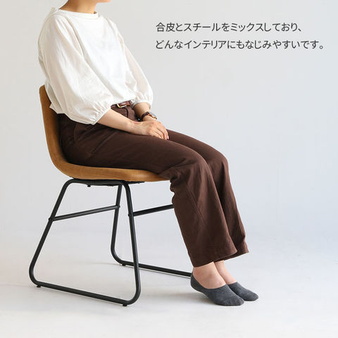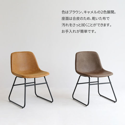丸みがかった座面が体にフィットし心地よいチェア。合皮とスチールをミックスしており、どんなインテリアにもなじみやすいです。色はブラウン、キャメルの2色展開。座面は合皮のため、乾いた布で汚れをさっと拭くことができます。お手入れが簡単です。 こだわりの丸みのある座面は体にほどよくフィットし、長時間座っても疲れません。 と合わせて使用することもできます。 |