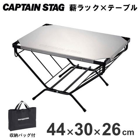 品番:P01-1-100-UC-0568※品名:アウトドアテーブル 薪ラック 折りたたみ テーブル 薪置き台 薪棚 薪 ストック 折りたたみテーブル 軽量 コンパクト キャンプ 収納バッグ付き 薪スタンド キャプテンスタッグ キャンプ 焚き火 焚火 バーベキュー UC-0568