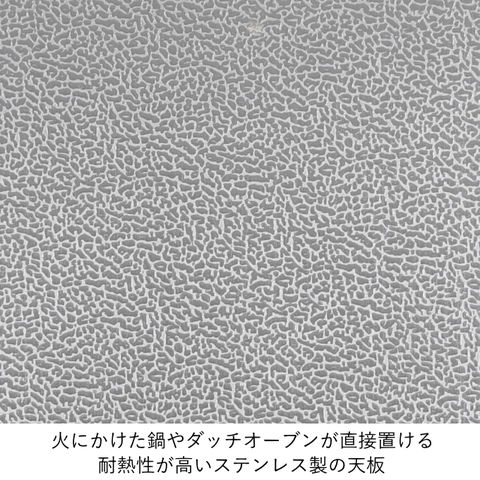 | 焚き火まわりに最適 火にかけた鍋やダッチオーブンが直接置ける、 耐熱性が高いステンレス製の天板。 CAPTAIN STAG(キャプテンスタッグ) 大地を悠々と移動して生活するたくましい牡鹿の群れ。そのリーダーとなるものは、群れの統率をとり、仲間を安全な場所へと導く大切な役割を果たす。そんな牡鹿(STAG)のリーダーというイメージと、大自然の中で頼りになる存在という思いを込め、アウトドア総合ブランド『CAPTAIN STAG』を立ち上げました。 より快適で、より楽しいアウトドアライフをサポートします。 |