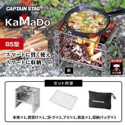 品番:P01-1-80-UG-42※品名:焚火台 コンパクト カマド スマートグリル B5型 (3段調節) キャプテンスタッグ(CAPTAIN STAG) UG-42 UG-0042 B5 収納 コンロ 網 グリル 炭 折りたたみ ソロキャンプ キャンプ バーベキュー