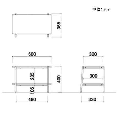 | 天板・棚: MDF(15mm厚) 塩ビシート真空成型 フレーム:スチール(φ15.9mm) 粉体塗装 |