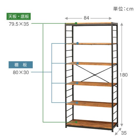 | 商品サイズ:幅84×奥行35×高さ180cm 天板・底板サイズ:幅39.5×奥行35cm 棚板サイズ:幅40×奥行30cm |