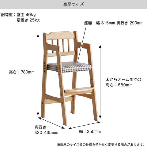 品番:I01-01-RAC-3331BR※品名:ハイチェア キッズチェア 子ども椅子 座面高 3段階調整 椅子 天然木 食事椅子 高さ調節可能 お手入れ簡単 ヴィンテージ レトロ ナチュラル 子供 ベビー 椅子 ブラウン