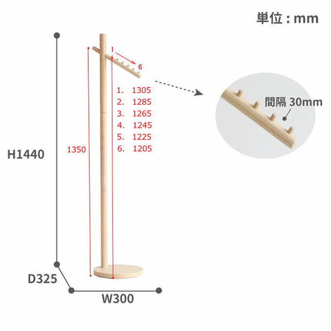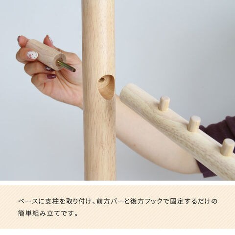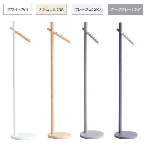 | 【WH/NA】フック・支柱:天然木(ラバーウッド)、土台:合成樹脂化粧繊維板(メラミン) 【DGY/GRJ】フック・支柱:天然木(ラバーウッド)、土台:繊維板 |