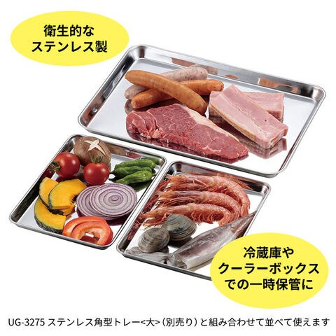 品番:P01-1-60-UG-3274※品名:【ネコポス発送】ステンレスバット 角型 トレー 小 料理 ステンレス バット 角バット 角型トレー 炭受け 浅型 BBQ 幅21.7cm 奥行15.3cm 高さ1.5cm キャプテンスタッグ UG-3274 B6 ソロキャンプ アウトドア キャンプ