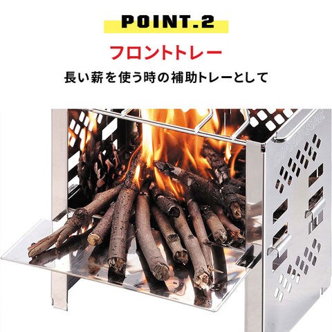 カマド スマートグリルB5型専用、1台3役のマルチパネル。 薪などの燃料をこぼれにくくするフロントパネル。長い薪を使う時の補助トレー。カトラリーなど小物が乗せられるサイドトレー。 錆びにくいステンレス製。 |