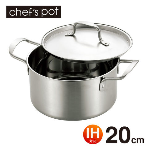 深型 両手鍋 20cm ステンレス IH対応[ガス火もOK] CPW-200 シェフズポット ステンレス製 シンプル 鍋 ミラー仕上げ オール熱源対応