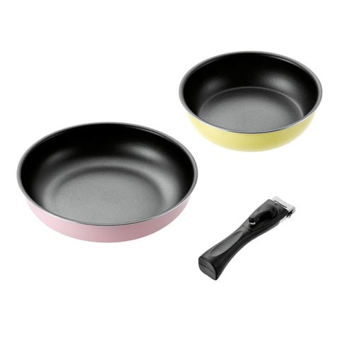 取っ手が取れる フライパン キッチンウェア 3点セット コロセレ colosele IH対応[ガス火もOK] CSS-50 フライパン20cm フライパン26cm ハンドル付き コンパクト収納 内面ふっ素樹脂加工 オール熱源対応 イエロー ピンク