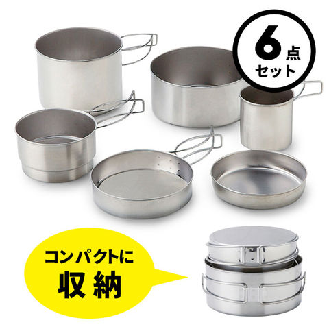 品番:H01-3-60-TS-09※品名:アウトランド キャンピングクッカーセット6pc 日本製 TS-09 キャンプ レジャー クッカー フライパン マグカップ カップ ソースパン コンパクト 収納 ステンレス製