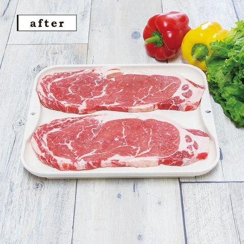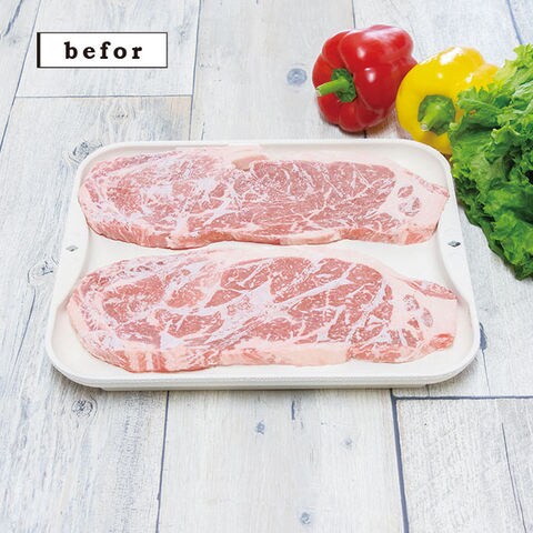 急速解凍!急速冷凍!粗熱取りに! 冷凍されたお肉やお魚を解凍皿に乗せるだけ。自然解凍だけど自然解凍より早く解凍できます。 |