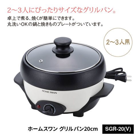 ホームスワン グリルパン 20cm 2~3人用 SGR-20V 鍋 電気鍋 丸洗いOK 煮る 焼く 焼きものプレート 送料無料