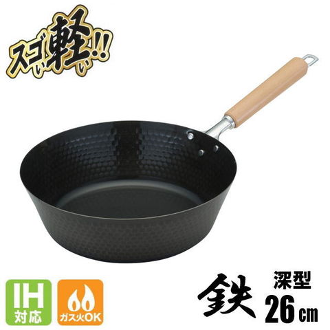 フライパン 深型 26cm 鉄 日本製 ih いため鍋 炒め鍋 鎚目鉄 IH対応 ガス 兼用 軽い 軽量 スゴ軽 鉄製 SGK-26DF